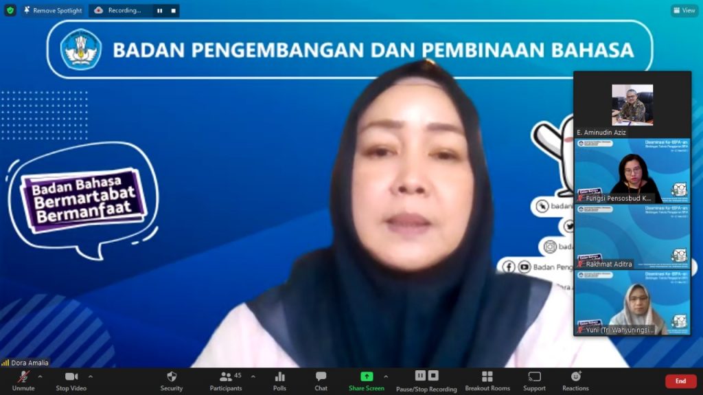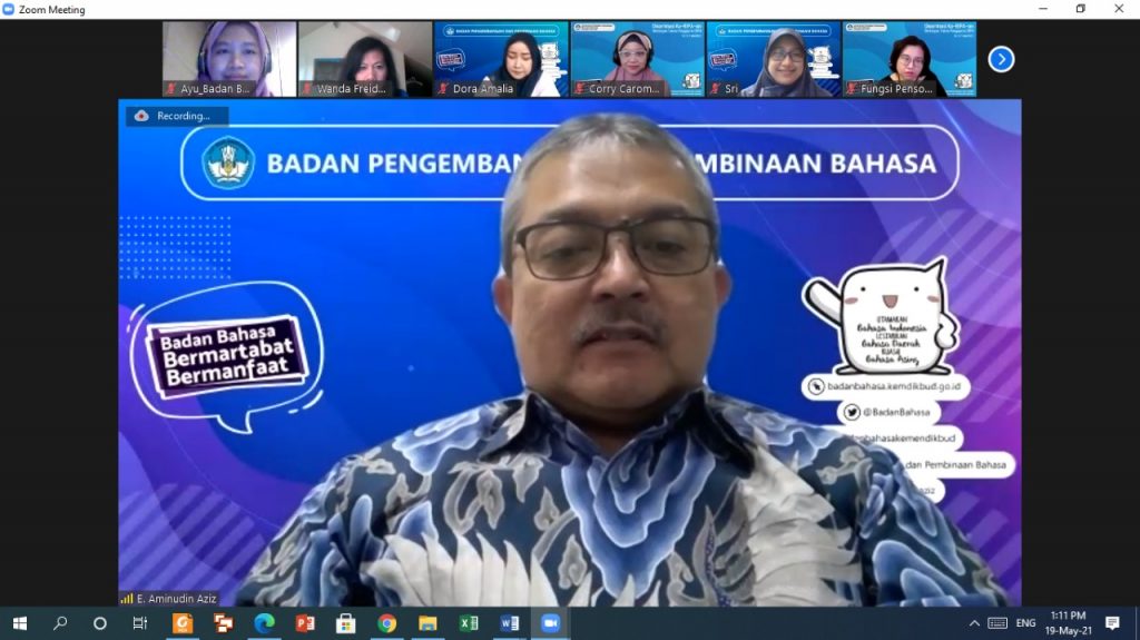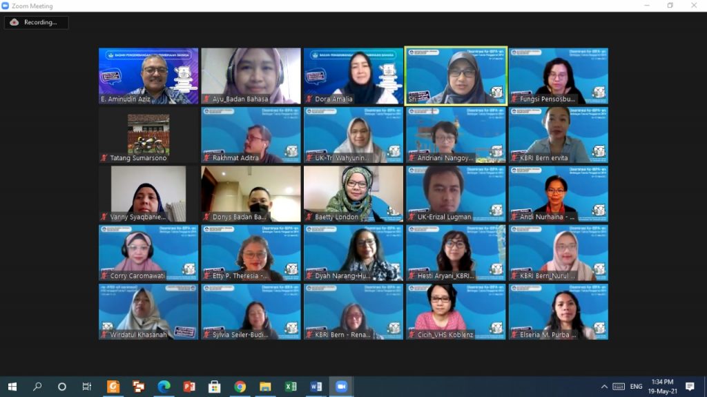Jakarta, 19 Mei 2021 — Kementerian Pendidikan, Kebudayaan, Riset, dan Teknologi (Kemendikbudristek) melalui Badan Pengembangan dan Pembinaan Bahasa (Badan Bahasa) membuka seri perdana Bimbingan Teknis Pengajaran Bahasa Indonesia bagi Penutur Asing (BIPA) dengan sasaran khusus pengajar BIPA di luar negeri secara berseri berdasarkan kawasan regional. Pada seri perdana, bimtek ini dilaksanakan secara daring bagi pengajar BIPA di wilayah Eropa, yaitu Inggris, Swiss, Spanyol, Jerman, dan Turki. Kegiatan ini secara umum bertujuan memperluas dan memperkuat jejaring pengajar BIPA, baik di dalam maupun luar negeri serta secara khusus bertujuan meningkatkan kompetensi pedagogis dan profesional para pengajar BIPA.