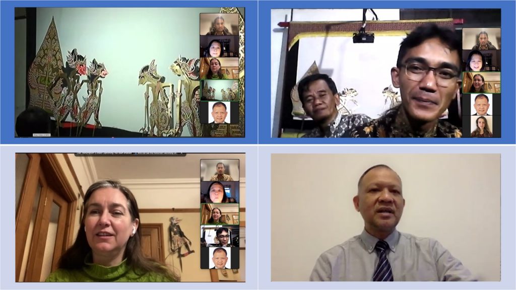 London, 14 Februari 2022 — Kantor Atase Pendidikan dan Kebudayaan, Kedutaaan Besar Republik Indonesia (KBRI) London bekerja sama dengan Middlesex University menyelenggarakan kuliah umum dan lokakarya bersama mengenai pengenalan gamelan dan wayang Jawa yang ditampilkan oleh Grup Pandem Seta, pimpinan Ki Gunawan Purwoko. Kegiatan ini merupakan bagian dari program Gamelan dan Wayang masuk kampus/sekolah, yang akan diusung KBRI London pada tahun 2022.
